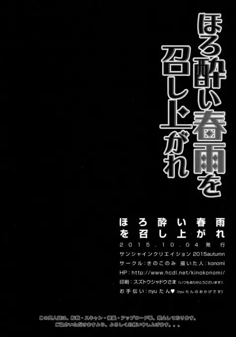 (SC2015 Autumn) [Kinokonomi (konomi)] Horoyoi Harusame o Meshiagare (Kantai Collection -KanColle-)