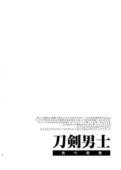 (C89) [Alice no Takarabako (Mizuryu Kei)] Touken Danshi Tabehoudai | 刀男人 (Touken Ranbu) [Chinese] [無毒漢化組]